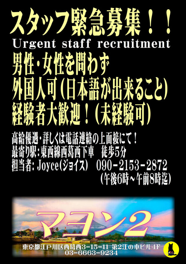 We’re looking for new cast staff (arubaito) immediately.