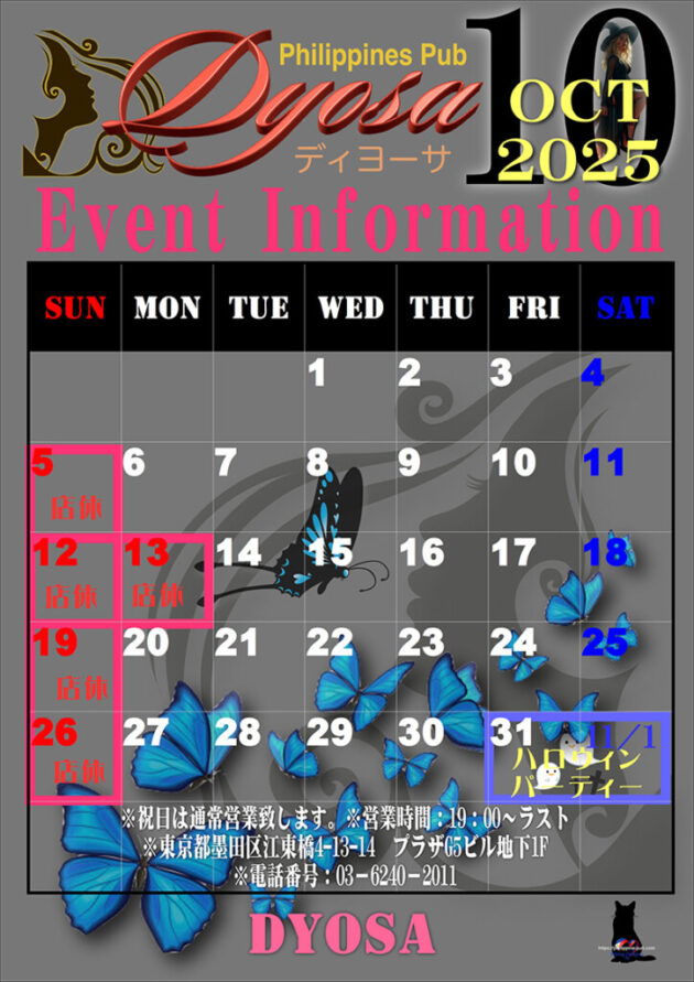 Shop:03-6240-2011 Reception hours: 6:00pm-1:00am